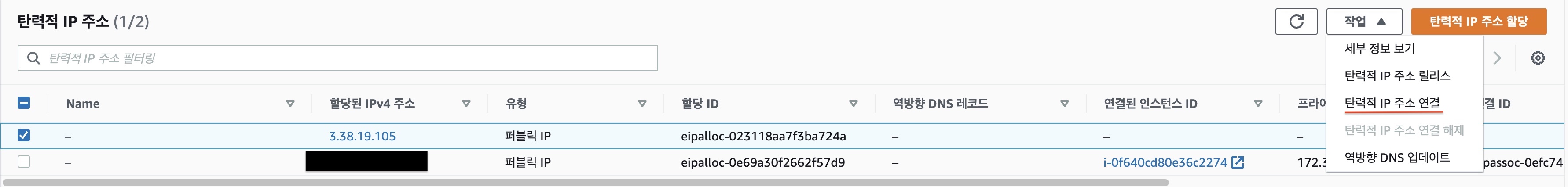 작업 목록에서 '탄력적 IP 주소 연결' 작업을 선택한다.