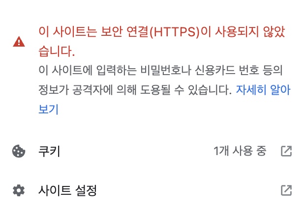 이전에는 http로 설정되어 있어서 경고가 있었다면