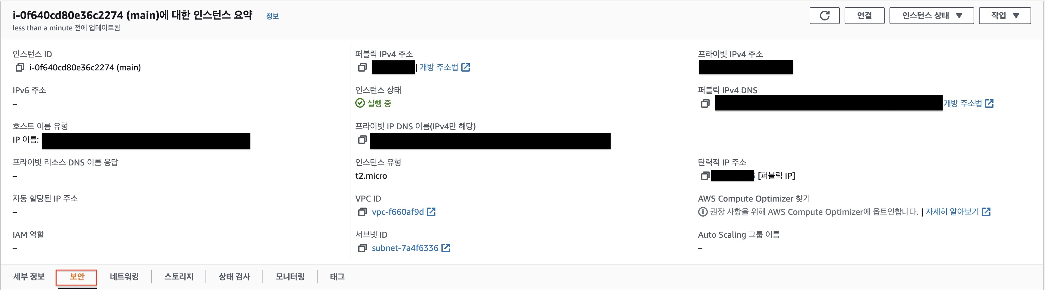 aws console -> ec2 서비스 -> 수정할 인스턴스(인스턴스 ID) -> 보안 -> 보안 그룹 -> 인바운드 규칙 편집