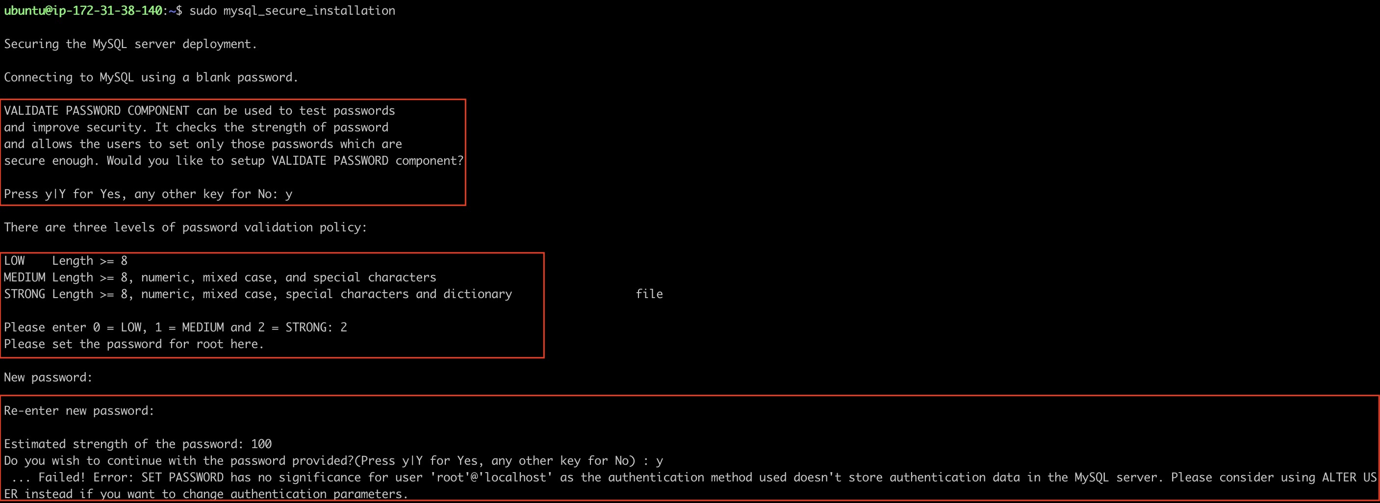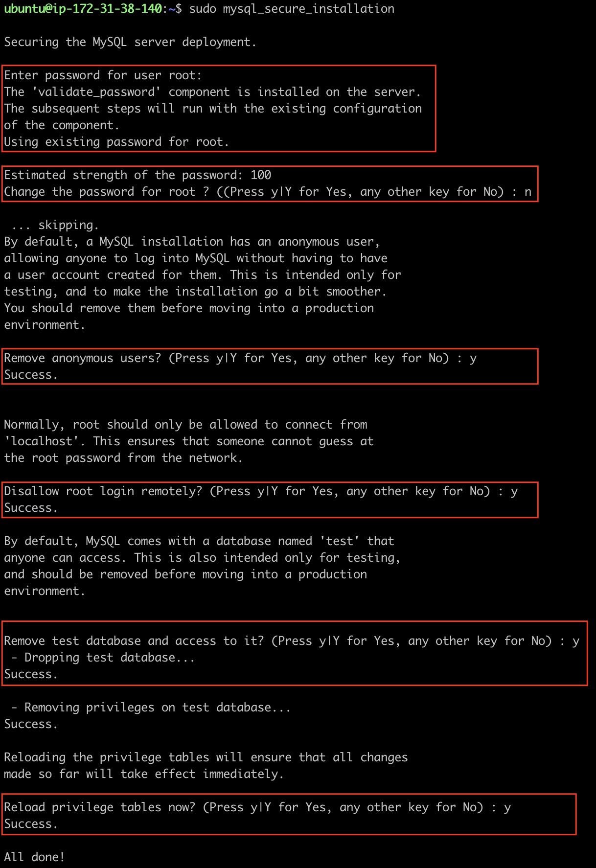 비밀번호가 변경되었다면(Query Ok) 이제 다시 secure_installation을 실행해 남은 보안설정을 진행한다.